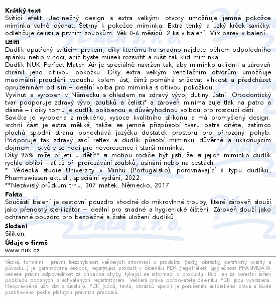 NUK Perfect Match AIR dudlík 0-6m 1ks mix barev
