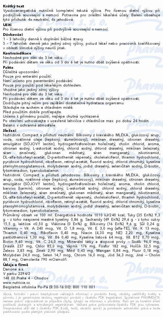 Nutridrink Compact je vysokoenergetická nutričně kompletní tekutá výživa. Dietní potravina pro zvláštní lékařské účely....