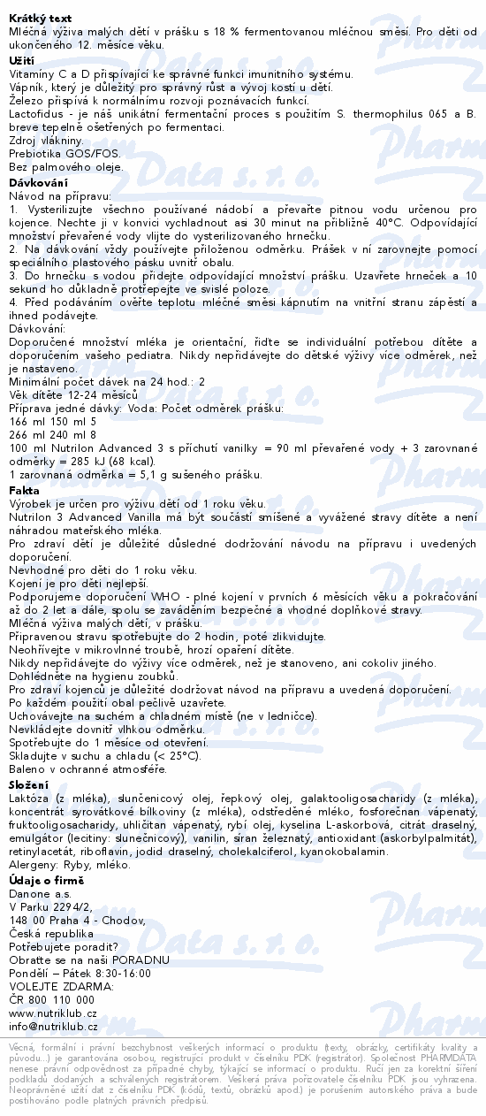 Mléčná výživa malých dětí v prášku s 18 % fermentovanou mléčnou směsí. Pro děti od ukončeného 12. měsíce věku.
