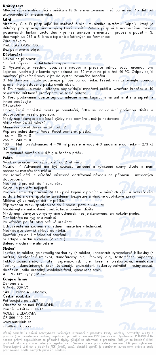 Mléčná výživa malých dětí v prášku s 18 % fermentovanou mléčnou směsí. Pro děti od ukončeného 24. měsíce věku.