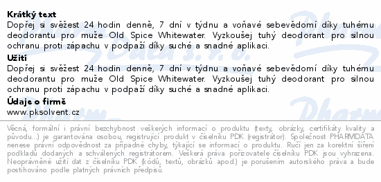 Dopřej si svěžest 24 hodin denně, 7 dní v týdnu a voňavé sebevědomí díky tuhému deodorantu pro muže Old Spice Whitewater. Vyzkoušej tuhý deodorant pro silnou ochranu proti zápachu v podpaží díky suché a snadné aplikaci.