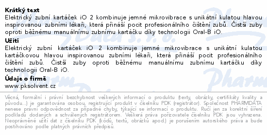 Elektrický zubní kartáček iO 2 kombinuje jemné mikrovibrace s unikátní kulatou hlavou inspirovanou zubními lékaři, která přináší pocit profesionálního čištění zubů. Čistší zuby oproti běžnému manuálnímu zubnímu kartáčku díky technologii Oral-B iO.