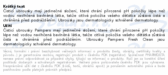 Dětské čisticí ubrousky Pampers Fresh Clean kombinují vyváženou vlhkost, díky které zanechávají na pokožce čistší pocit, a...