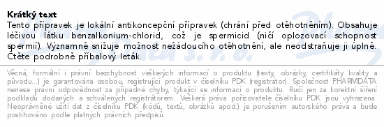 Tento přípravek je lokální antikoncepční přípravek (chrání před otěhotněním). Obsahuje léčivou látku benzalkonium-chlorid, což je spermicid (ničí oplozovací schopnost spermií). Významně snižuje možnost nežádoucího otěhotnění, ale neodstraňuje ji úplně. Čtěte pozorně příbalový leták.