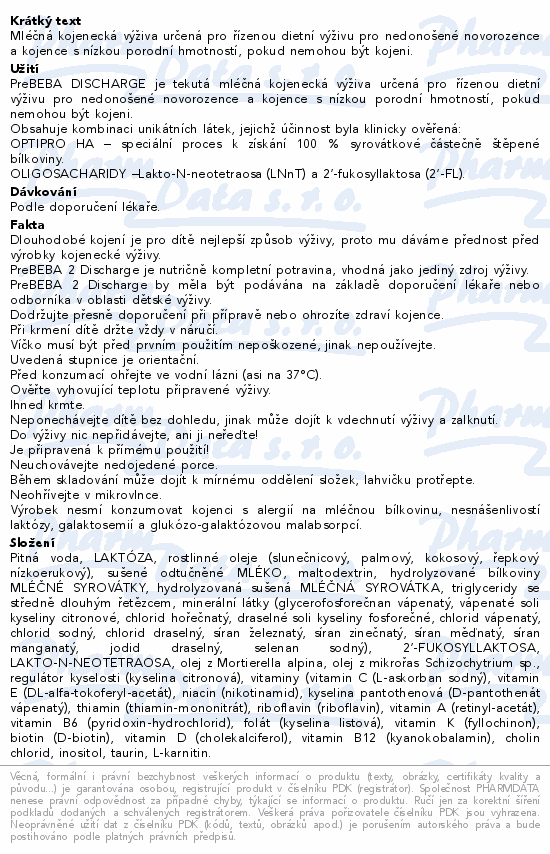 PreBEBA DISCHARGE je instantní mléčná kojenecká výživa, určená pro řízenou dietní výživu pro předčasně narozené děti a...