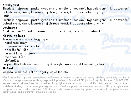 Elastická tejpovací páska vyrobena z umělého hedvábí, hypoalergenní, k odstranění bolestí svalů, šlach, kloubů a jejich regeneraci, k podpoře oběhu lymfy.