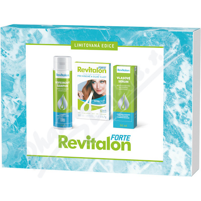 Revitalon Box obsahuje kombinaci výrobků určených pro komplexní péči o vlasy. Kapsle Revitalon Forte pro výživu vlasů zevnitř a vlasovou kosmetiku Revitalon Kofeinový šampon a Revitalon Vlasové sérum s kofeinem, kyselinou hyaluronovou a aminokyselinami.