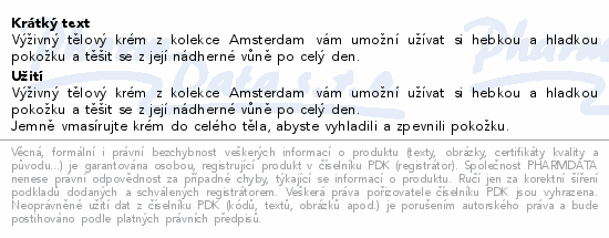 Výživný tělový krém z kolekce Amsterdam vám umožní užívat si hebkou a hladkou pokožku a těšit se z její nádherné vůně po celý den.