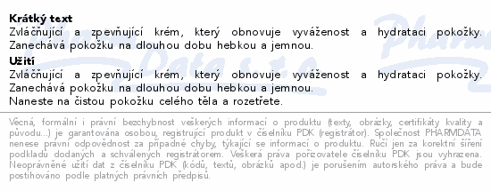 Zvláčňující a zpevňující krém, který obnovuje vyváženost a hydrataci pokožky. Zanechává pokožku na dlouhou dobu hebkou a jemnou.