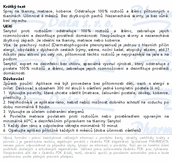 SANYTOL dezinfekce proti roztočům štěnicím 300ml
