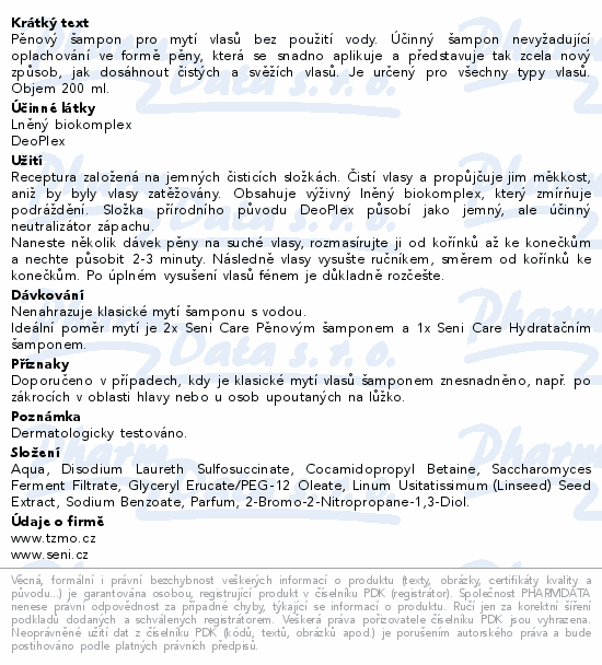 Pěnový šampon pro mytí vlasů bez použití vody. Účinný šampon nevyžadující oplachování ve formě pěny, která se snadno aplikuje a představuje tak zcela nový způsob, jak dosáhnout čistých a svěžích vlasů. Je určený pro všechny typy vlasů. Objem 200 ml.