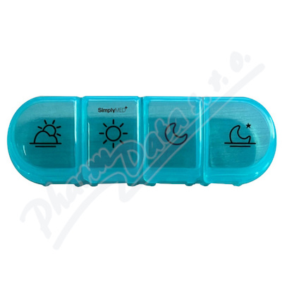 Denní dávkovač léků SimplyMed Daily ze čtyřma přihrádkami vám zaručí přehledné dávkování ráno, v poledne, večer i v noci–po celý den.