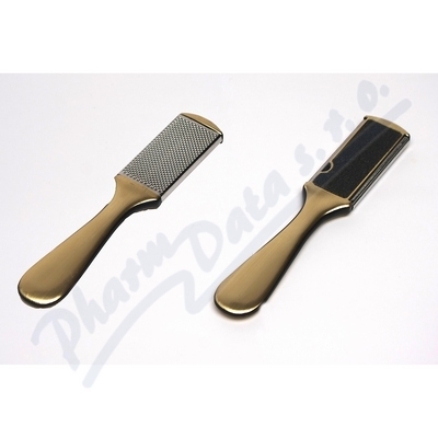 Nástroj na pedikúru: jedna strana (rašple) pro ošetření zrohovatělé kůže na chodidlech, z druhé strany pilník pro ošetření nehtů na nohou.