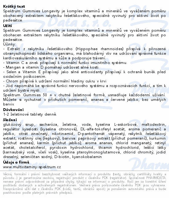 Spektrum Gummies Longevity je komplex vitaminů a minerálů ve vyváženém poměru obohacený extraktem rakytníku řešetlákového, speciálně vyvinutý pro aktivní život po padesátce.