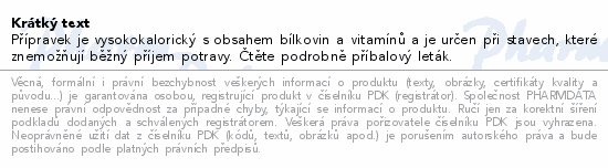 Přípravek je vysokokalorický s obsahem bílkovin a vitamínů a je určen při stavech, které znemožňují běžný příjem potravy. Čtěte pozorně příbalový leták.