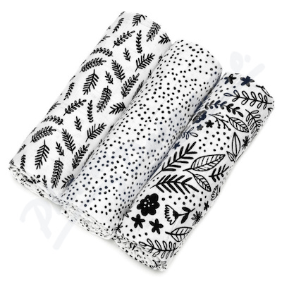 T-TOMI Látkové pleny 70x70cm 3ks Black flowers
