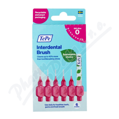 TePe Original meziz. kartáčky 0, 4 mm, růžové, 6 ks. Drátek je potažený plastem pro maximální ochranu dásní a citlivých zubních krčků. Vysoce odolné vůči zlomení. Plochá rukojeť pro pohodlné a přesné čištění. Baleno v papírové uzavíratelné krabičce.