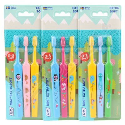 Oblíbené dětské zubní kartáčky TePe pro nejmenší ve věku 0 až 3 roky. Malá hlavice dosáhne do těžko dostupných ploch. Extra...