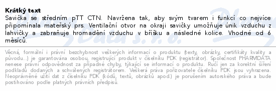 Savička se středním pTT CTN. Navržena tak, aby svým tvarem i funkcí co nejvíce připomínala mateřský prs. Ventilační otvor na okraji savičky umožňuje únik vzduchu z lahvičky a zabraňuje hromadění vzduchu v bříšku a následné kolice. Vhodné od 6 měsíců.