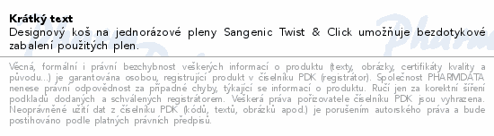 Designový koš na jednorázové pleny Sangenic Twist & Click umožňuje bezdotykové zabalení použitých plen.