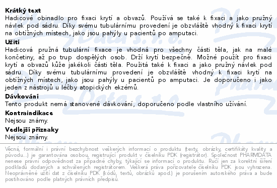 Hadicové obinadlo pro fixaci krytí a obvazů. Používá se také k fixaci a jako pružný návlek pod sádru. Díky svému tubulárnímu provedení je obzvláště vhodný k fixaci krytí na obtížných místech, jako jsou pahýly u pacientů po amputaci.