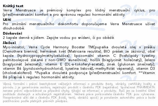 Verra Menstruace je prémiový komplex pro klidný menstruační cyklus, pro (před)menstruační komfort a pro správnou regulaci hormonální aktivity.