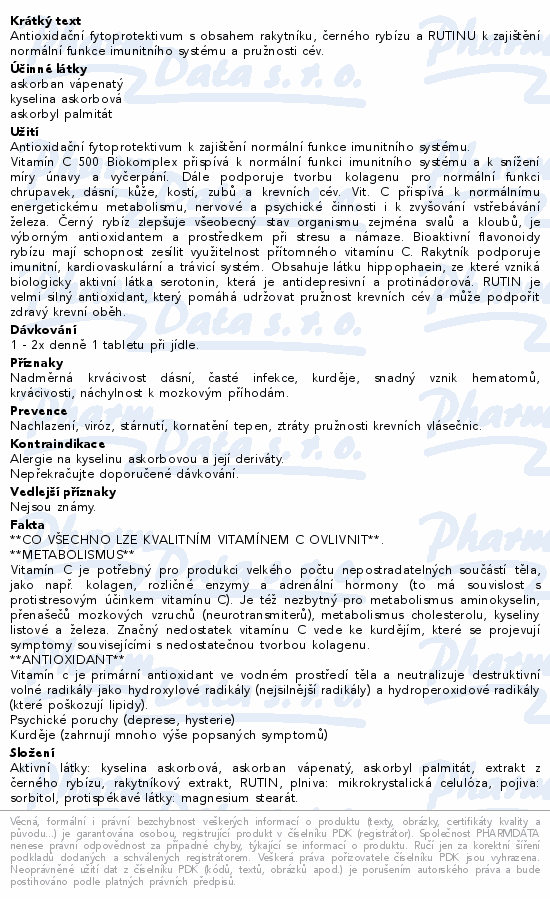 Vitamín C + RUTIN Biokomplex 500mg tbl.60 Dr.Bojda