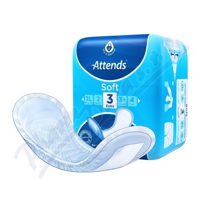Ochranná pomůcka pro lehký stupeň úniku moči z měkké netkané textílie. Vložky Attends Soft mají bezpečné, velmi účinné savé jádro, díky kterému se vlhkost rychle vstřebává a je odvedena z povrchu dovnitř savého jádra, kde se uzamkne.