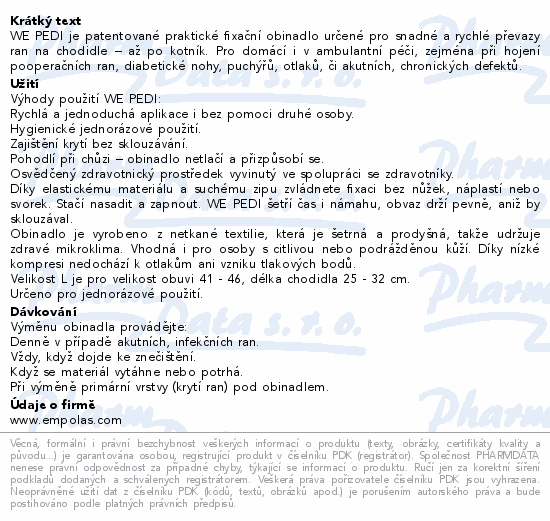 WE PEDI je patentované praktické fixační obinadlo určené pro snadné a rychlé převazy ran na chodidle – až po kotník. Pro...