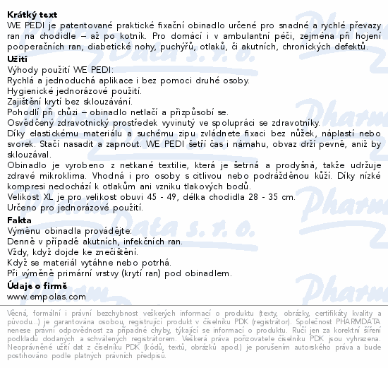 WE PEDI je patentované praktické fixační obinadlo určené pro snadné a rychlé převazy ran na chodidle – až po kotník. Pro...