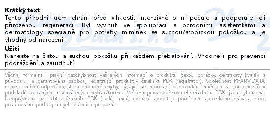 Tento přírodní krém chrání před vlhkostí, intenzivně o ni pečuje a podporuje její přirozenou regeneraci. Byl vyvinut ve spolupráci s porodními asistentkami a dermatology speciálně pro potřeby miminek se suchou