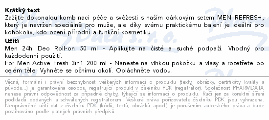 Zažijte dokonalou kombinaci péče a svěžesti s naším dárkovým setem MEN REFRESH, který je navržen speciálně pro muže, ale díky svému praktickému balení je ideální pro kohokoliv, kdo ocení přírodní a funkční kosmetiku.