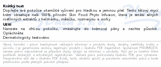 Vyživující tělové mléko pro suchou pokožku se 100% přírodním SKIN FOOD PHYTO INFUSION, obsahující extrakty z heřmánku,...
