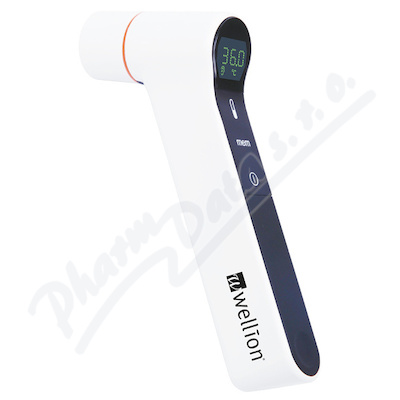 Bezkontaktní teploměr Wellion je určen pro měření tělesné teploty člověka na jeho čele a v ušním zvukovodu. Konstrukce je praktická a ekonomická, protože není třeba používat jednorázové ušní nástavce. Okamžité měření během 1 sekundy.