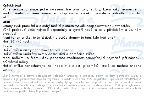 Vůně čerstvě uříznuté jedle vyvážená hřejivými tóny ambry, která díky jedinečnému knotu Heartwick Flame přináší tento typ svíčky zážitek dokonalého pohodlí u hořícího krbu.