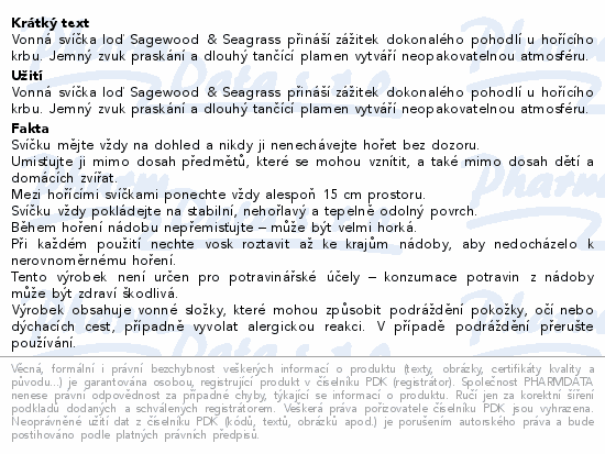 Vonná svíčka loď Sagewood & Seagrass přináší zážitek dokonalého pohodlí u hořícího krbu. Jemný zvuk praskání a dlouhý tančící plamen vytváří neopakovatelnou atmosféru.